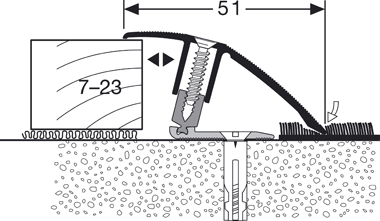 - a pre-drilled threshold cover, to be screwed on the aluminium channel. Cover can then be tilted to accommodate level differences.