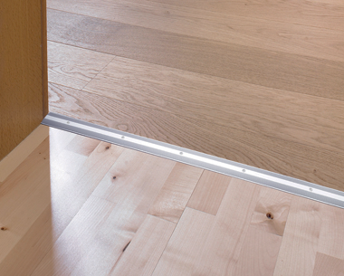 Suitable for junctions between parquet floors and thinner floor coverings (carpet, PVC, linoleum...).