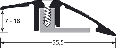 | 1267 | Alu silver | 2.70 m | 55,5 mm | 7 - 18 mm | Drilled | Reducer profile | In protective sheath with screws and plugs | Wide cover | PPS REDUCER 7/18MM ALU SILVER 2.70M |