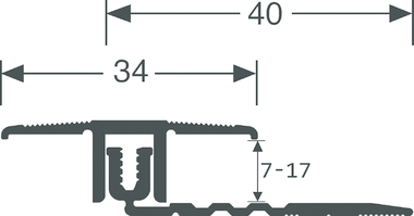 | 1224 | Alu titanum | 0.90 m | 33,7 mm | 7 - 17 mm | Drilled | Transition profile | In display prepacked sheath with screws and plugs | Standard cover | PPS TRANSITION 7/15MM ALU TITANUM 0.90M |