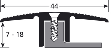 | 1277 | Alu silver | 2.70 m | 44 mm | 7 - 18 mm | Drilled | Transition profile | In protective sheath with screws and plugs | Wide cover | PPS TRANSITION 7/18MM ALU SILVER 2.70M |