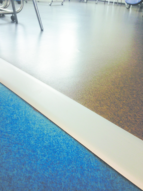 Edges designed especially to help the traffic of trolleys without jerking. Especially suited for hospitals.