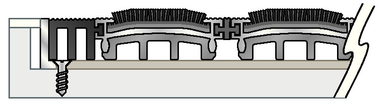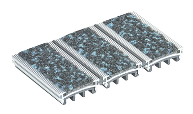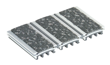 The Esplanade 6000 is an entrance mat for heavy (pedestrian and wheeled traffic) for indoor use (with textile insert). Made of unwrought aluminium profiles assembled to one another and in which various types of insert are glued, according to the mat's function and the location where it will be fitted. The bars are assembled using a PVC linking joint. A PVC profile under the bar provides sound insulation and gives the mat non-slip properties. Finishing strips are supplied for the ends, so that the mat can be adjusted in the frame.