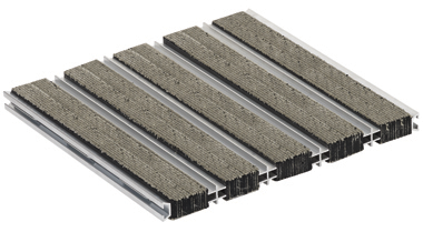 Construction: «ROMAT REVERSE» matting is made of inserts fitted between two mill aluminium profiles. The whole matting is assembled with galvanised steel rods.