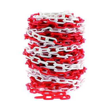 Chain, made from polyethylene rings, forming red and white coloured segments, alternating every 50cm. Ring Ø: Ø 5.5 x 21 x 39 mm Max tension: 75 kg Length: 25 m...