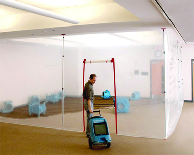 A dust barrier up to 3 m high and 8 m wide. Attach the protective tarp to the system for attachi...
