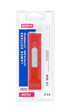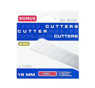 9 mm Automatic dispenser of 10 blades Box of 100 blades 9 mm 9 mm Box of 100 blades 18 mm 18 mm 18 mm 10 blades on card safety dispenser 25 mm X-CUT PRODUCT DESCRIPTION X-CUT Find out more CHOICE OF CRITERIA 12 segments 12 elements 7 segments 7 elements 6 elements 9 mm 18 mm 25 mm 0.40 mm 0.50 mm 0.70 mm