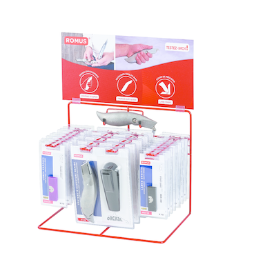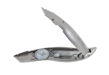 Very stable blade fixing. Anti-grip finish. Rear tip for tracing and pre-cutting coverings in corners. Supplied without blades, with protective sleeve.