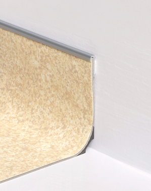 Rigid PVC cap profile to be glued down before coving the floor.