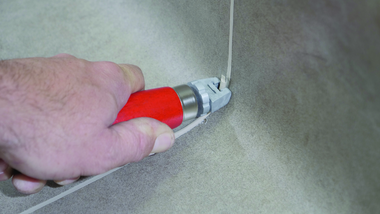 For trimming welding rod in coving, or outside corners as well as for cove-base projects. The special blade ensures that the floor covering won’t be damaged.