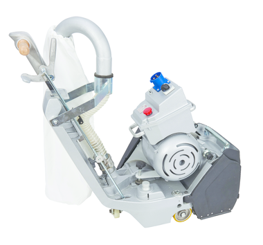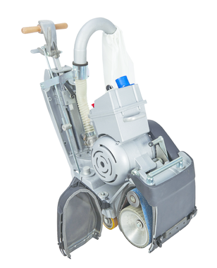 True floor leveling - grinding machine on 3 wheels (2 fixed, 1 swivelling) for professionals. Heavy duty. Self-centering belt tensioner system.