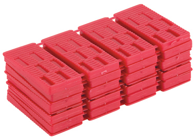 PVC wedges with thicknesses from 7 to 14 mm. Easily removed when installation is finished.