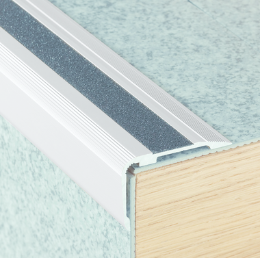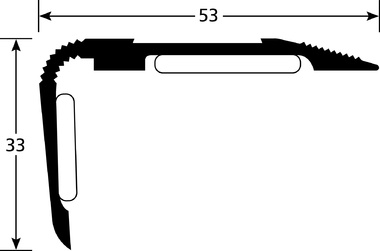 | 234523 | Alu silver | 3.00 m | 53 x 33 mm | Self-adhesive | Supplied with 19 mm black adhesive insert. Fitted | STAIRNOSING BEVELLED ADHESIVE +19MM INSERT FIT 3M |