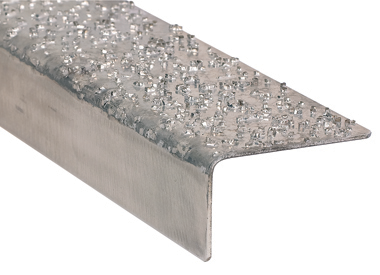 Stainless steel profile with angular stainless steel particles attached which make stair-nosings highly slip resistant (both indoors and outdoors) even in areas...