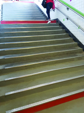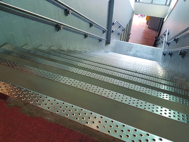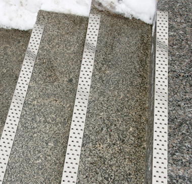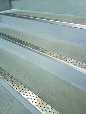 Stainless steel profile stamped from the bottom, with highly anti-slip rough holes. Class R12