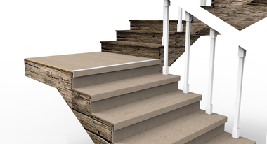 Laminate blades with groove and tongue assembly. Then attach the landing stair-nosing ref. 3915.