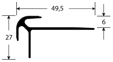 Double edge 6 mm PRODUCT DESCRIPTION For 6 mm thick carpet and PVC. Find out more CHOICE OF CRITERIA Alu silver 3.00 m 49.5 x 27 mm