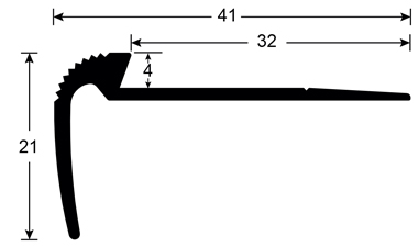 Edge 4 mm PRODUCT DESCRIPTION For 4 mm thick floor coverings and carpet tiles. Find out more CHOICE OF CRITERIA Alu silver 3.00 m 41 x 21 mm