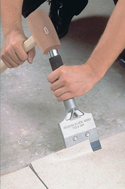 To remove floor coverings (tiles, PVC) glued with adhesive, using a mallet. Length : 31 cm. Weight : 490 g. Foam handle. Steel renforced. Solid handle. Blade :...