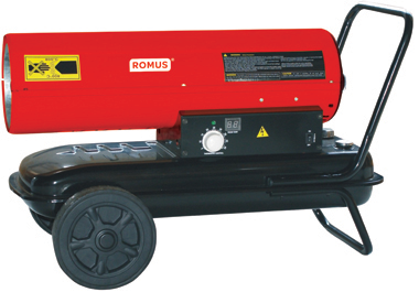 For heating rooms over long periods. Fixed output temperature approx. 250° C. Chimney-less hot air generator with compressor. Stainless steel combustion chamber...