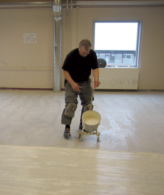 For applying adhesives, levelling compounds... Easy and effortless spreading (blocking and brake system). Supplied with a 30 l bucket.