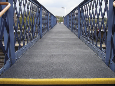 Non-slip plate, high resistance, preformed, anti-corrosion, made from glass fibre designed to cover a large surface, for ramps, walkways, etc. Attached by drill...