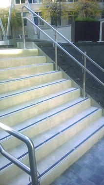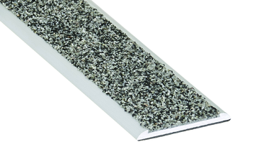 For installations open to the public, stations, stadium, multiple occupancy premises. Aluminium stair nosing with 1.5 mm thick insert made from poured acrylate resin and marble aggregates, 19 mm wide. Secure using stainless steel screws (not supplied)
