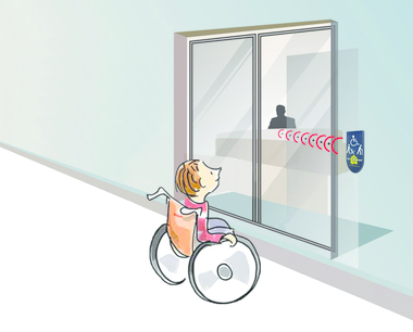 Allows persons with reduced mobility to advise their presence at the entrance to a store or any other building open to the public and signals their need for an...
