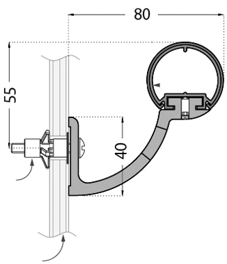 Rounded handrail, very pleasant to touch, well suited for corridors and staircases of senior citizen rest homes, clinics and community housing.