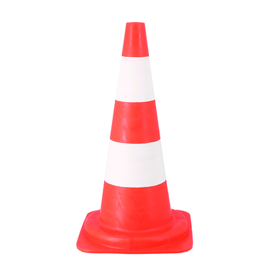 En polyéthylène dur, rouge teinté dans la masse avec bandes blanches. Hauteur : 540 mm Base : 290 x 290 mm Poids : 1,1 kg