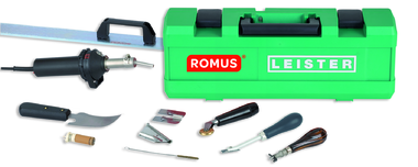 Coffret PVC comprenant 10 pièces : • 1 chalumeau Leister Hot-Jet S 95082 • 1 gouge murale 95125 • 1 buse triangulaire à évents 95030 • 1 couteau quart de lune 9...