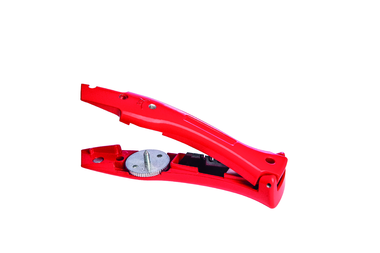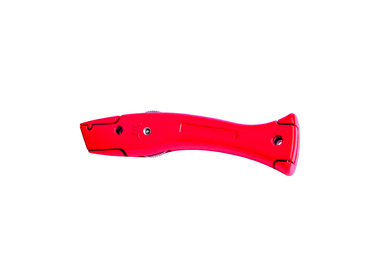 En aluminium moulé, recouvert d'une peinture cuite au four rouge. Ouverture par molette sur la tranche. Livré sans lame avec étui plastique de protection.