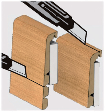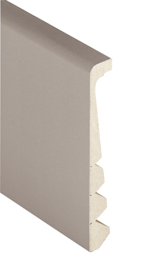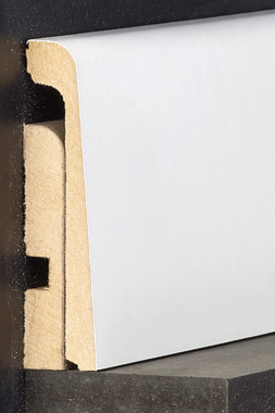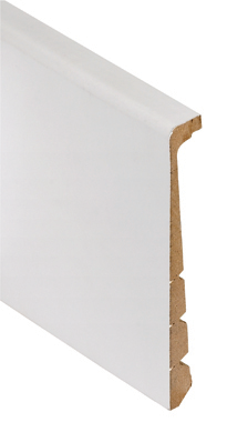 Plinthe en MDF recouverte d'un papier très résistant qui permet de faire une finition sans avoir à déposer la plinthe en place. Hauteur totale 13 cm.