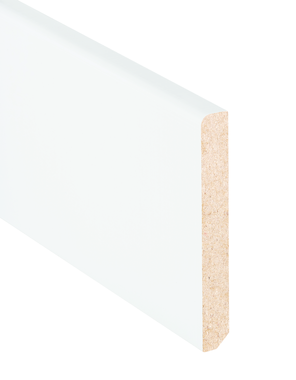 Plinthe en mdf à coller. Recouvert d'un papier très résistant, blanc. A coller telle quelle ou peut être repeinte.